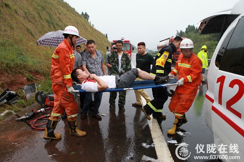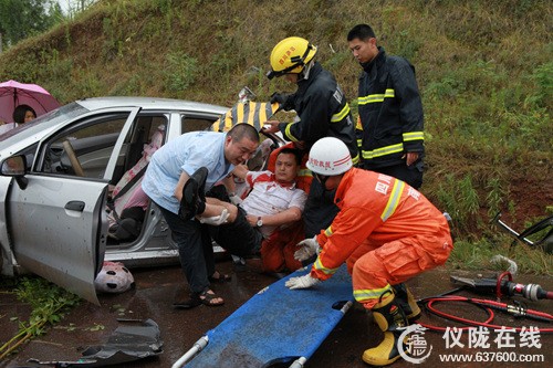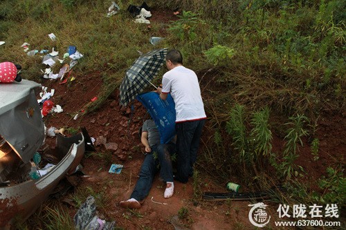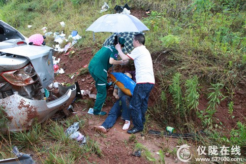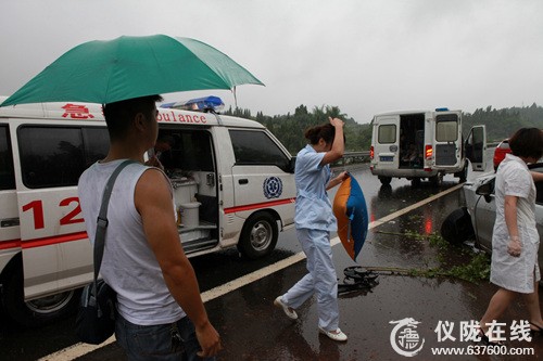 当时同车的有仪陇县人民医院内科主任黄智春,他就是照片中为伤者撑伞的男子。在黄智春的带领下,他们利用自己的专业知识对车祸伤者开展施救。
