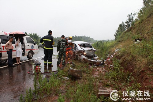 6月30日下午2.50分左右,一辆车牌号头为川E的雪佛兰小轿车在(巴南高速西充古楼)处,因为雨天路滑等原因撞上高速公路右侧扶栏,车祸导致一人当场死亡,车上的其余三人不同程度受伤。