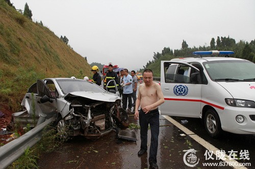 参与车祸现场施救的付航告诉记者,30日下午,他与几个同事一道去南充,路过(巴南高速西充古楼)处时,他发现一辆受创严重的雪佛兰轿车靠在路边的沟里,而此时大约距离车祸发生仅几分钟。