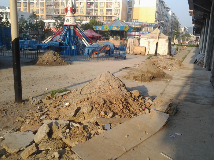 锦宏苑二期和电信、烟草公司之间的步行街便是新县城最脏、最乱、最差的一条步行街了,不知什么原因,这一条街道街面好像没有贴过地砖,一直堆放着一些儿童游乐设施,现在又成了垃圾回收人员的堆放处,简直是一片狼藉、乱七八糟的景象,附近的人几乎不从这条街过路(这条街每天的人流量非常少原因于此吧)。还有的门面也被下挖了几十厘米,多危险啊。所有的这些情况从无人问津,无人管理、无人整治、无人打扫。这样的街道与什么什么县城是格格不入啊。