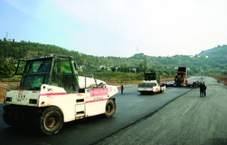 12月18日,笔者在仪陇县城宏德大道东段看到,几辆压路机正配合铺油机在工人的协助下进行路面铺油工作,运输沥青的运料车来回穿梭,现场呈现一片繁忙的景象。