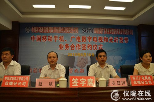 8月18日9时许,四川省有线广播电视网络股份制公司仪陇分公司与中国移动通信集团四川有限公司仪陇分公司在领地国际酒店二楼会议厅,签署了中国移动手机、广电数字电视和光纤宽带业务合作签约仪式,这标志着中国移动仪陇分公司与四川广电网络仪陇分公司开启了仪陇县信息社会大发展大繁荣的里程碑,从此建立起了长期密切的战略合作关系。