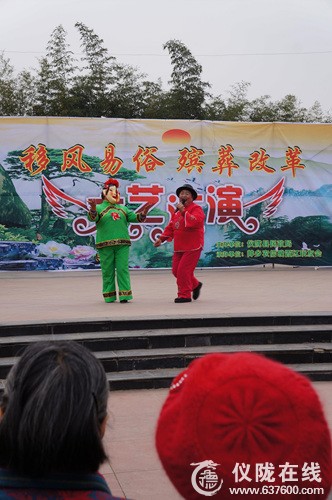 12月29日下午,四川省仪陇县帅乡晚霞红玩友会的老年文艺爱好者,自编自演以宣传展示该县殡葬改革和民生工作成效为主题的街头文艺演出活动在滨江大道红色经典广场举行,在演出中,老人们用秧歌舞、快板、小品等15个自编自演的传统节目向群众进行了表演,他们表演的群口词《殡葬改革好》、方言朗诵《老人的遗嘱》、小品《天生是活宝》、舞蹈《党的恩情永不忘》等15个传统节目表达了老人感谢党的民生工程给广大群众带来的受益和实惠,倾情歌颂了老人们新生活和仪陇山乡的新气象。