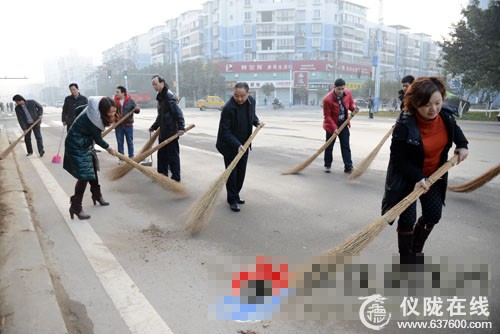 1月21日,县委书记陈科,县委副书记、县长石全华带领全县各机关企事业单位、新政镇及社区的上千名干部职工携带扫帚、铁锹等工具,走出机关,走上街头,人人参与,个个动手,集中清扫城区内大街小巷的卫生,清除“牛皮癣”,使城区市容市貌焕然一新。