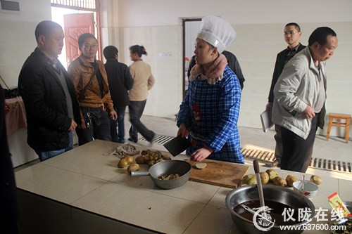 图为林全书镇长检查安乐小学食堂