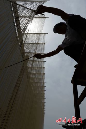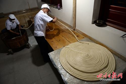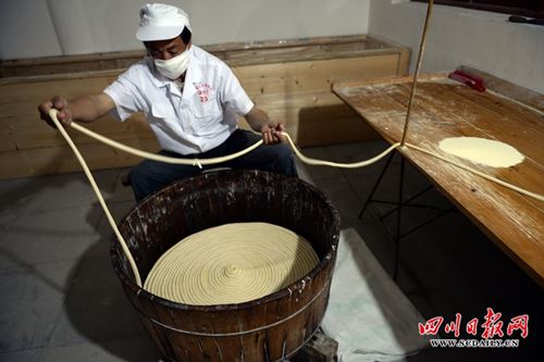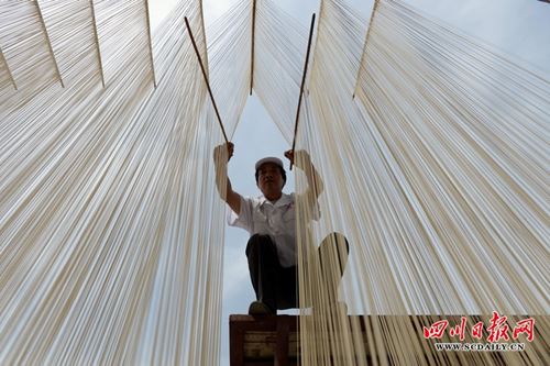5月11日,在四川省南充市仪陇县河西工业集中园区“川北客家”手工面手工作坊,记者用镜头记录了客家手工面师傅制作川北客家的全过程。客家人经过了五次迁徙,“移湖广,填四川”是第四次迁徙,历经近400年的繁衍生息,目前,在四川省南充市仪陇县的客家人近30万,占仪陇县总人口的26%。千百年来,客家人在衣食住行,婚丧嫁娶等习俗风尚,任然在继续传承。面条更是古老的客家主食,数千年来客家人在传承中不断创新,使面条这一古老主食品不断地焕发生机。