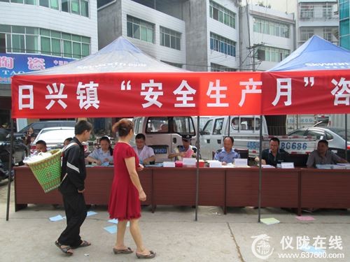 6月21日上午,日兴镇组织安办、警务室、日兴派出所、日兴片区交通执法中队、交警秩序中队、金城食品药品监督管理所、日兴工商所、供电所、司法所、中心卫生院、天然气公司等单位在日兴镇农贸街举行“安全生产月咨询日”活动。