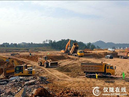 本报讯 12月26日,记者在度门组团二、四号规划道路、新旧场区互通道路改线工程施工现场看到,运土车来回穿梭,挖掘机正在开挖土石方,整个工程正有序地推进。