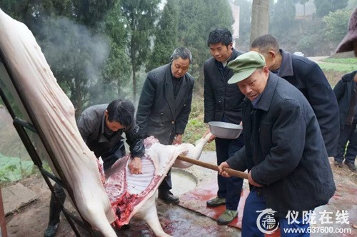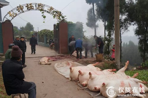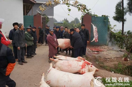 12月30日上午,仪陇县新政镇龙神垭敬老院热闹非凡,欢声笑语不断。一大早,60名五保老人聚在一起杀年猪迎新年。现场有的准备工具、按猪、搭架子、有的锯柴,有的烧水,有的打下手……能够劳动的老人们都主动的参与,大家都忙得不亦乐乎,脸上洋溢着幸福的笑容,收获着丰收的喜悦。不到三个时辰,六头猪都被屠宰完毕,看着一摞摞的猪肉,老人们都笑得合不拢嘴。