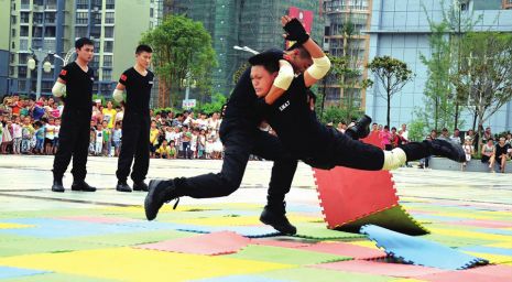 近40分钟的战术汇报演练中,特巡警队员用过硬的素质、精湛的拳法、敏捷的身手、整齐划一的动作,让现场观众直呼过瘾。