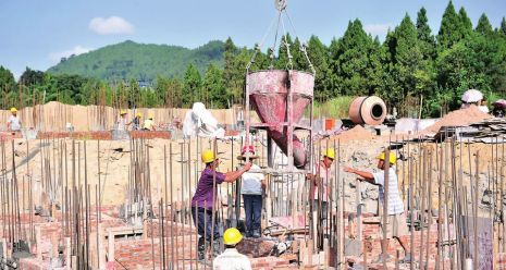 8月12日,记者在仪陇县马鞍“西部客家民俗风情园”建设工地看到,施工人员有的在浇灌混凝土,有的在编扎焊接房屋基础钢筋,一派热火朝天景象。