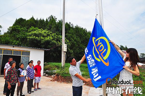 郭勇设计了自己企业的旗帜,每周还有个简单的升旗仪式