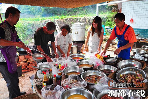 开园时,按照当地风俗,许多村民都来朝贺,丰富的菜品预示着大家将奔向更加美好的明天