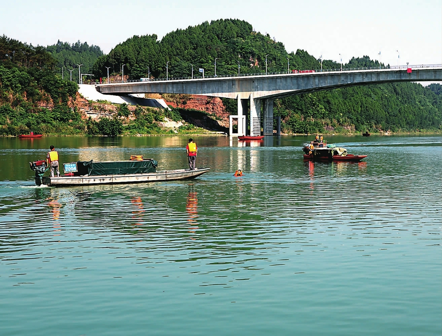 6月16日,仪陇县渔业船舶水上安全应急演练在仪陇嘉陵江二桥下举行。