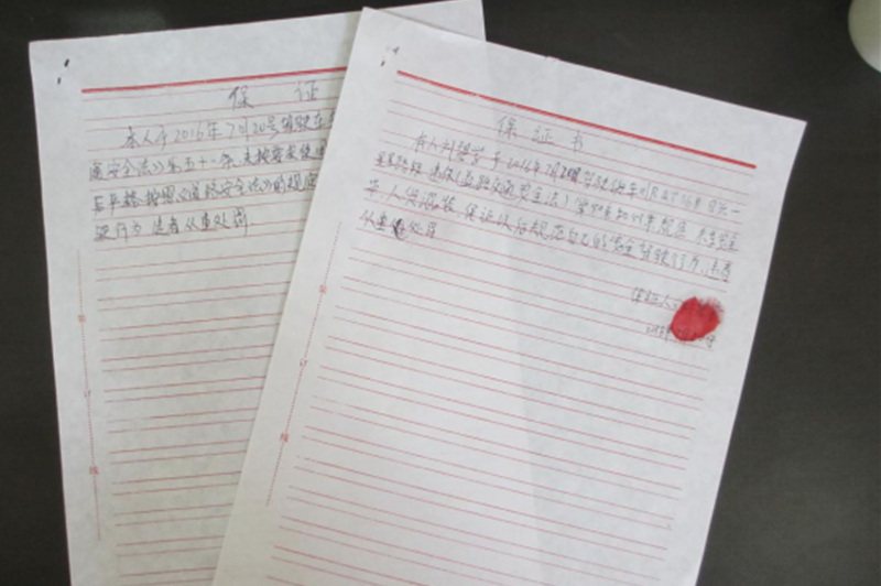 为了提升政府执法监管形象,巩固专项执法检查成果,检查小组改进处罚机制,对违法、违规人员的驾驶证、行驶证予以暂时没收,并通知他们到镇安办会议室进行道路交通法律法规教育学习,待现场教育学习一个小时后,当事人现场写下保证书,再将证件返还他们。