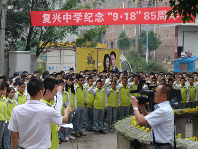 上午10时,复兴中学师生代表400余人,整齐地列队站在“抗日阵亡将士纪念碑”前,为抗战以来死难同胞默哀1分钟,然后面朝纪念碑,庄严宣誓。“不忘‘九·一八’血雨腥风,牢记历史、振兴中华!”一声声铿锵有力的誓言,回响在纪念园上空,使现场气氛肃穆凝重。