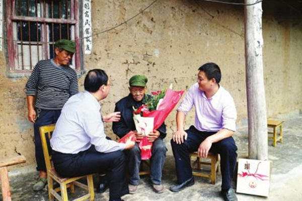 该县民政局工作人员详细了解了老红军们的生活起居等情况,并为每位老红军送上了鲜花和1万元慰问金。
