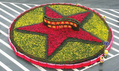 10月29日,记者在仪陇县马鞍镇转盘处看到,用鲜花摆出的“隆重纪念朱德同志诞辰130周年” 的五角星造型格外醒目(如图)。据介绍,为纪念朱德同志诞辰130周年,该县开展了一系列形式多样的纪念活动。