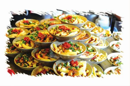 这些菜色泽鲜亮、 油重味浓,或蒸或炖,或煎或炸,令人垂涎。 特别让人回味悠长的是摆放在桌子正中的第一道菜,一个大品碗中从上到下层层有序垒砌,像法老的金字塔。在当地友人的引领下, 我们小心翼翼地动筷,轻轻送入嘴中,细细咀嚼。 上面和中间的筒子肉丸子片、煮鸡蛋切片、豆腐片、猪肚片、猪肝或猪心片香味四溢、营养丰富,碗底的红萝卜、白萝卜、藕片、豆芽、黄花、粉条清新爽口、色彩绚丽。喝一口汤,鲜香淡雅, 并不见有多少佐料的身影。一顿饭菜吃下来,刁蛮的肠胃被安抚得妥妥帖帖, 大家都说虽没大饭店的菜品亮丽光鲜,但朴素、夯实、忠厚的特质更能抚慰人的味蕾。