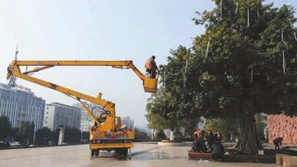 1月14日,记者在大街上看到,园林工人正将形态各异的彩灯、成串的大红灯笼高高挂起。装点一新的县城,让市民感受到浓浓的“年味”。据悉,该县2017年春节光彩美化工程主要在县城行政中心广场、红色经典广场、琳琅大道、宏德大道等主要节点,通过悬挂红灯笼、缠绕LED彩灯带、悬挂满天星等装饰物,营造喜庆、热烈的节日氛围。
