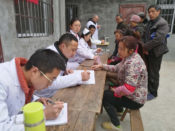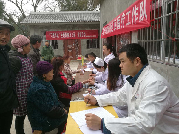 2月20日上午,复兴中心卫生院副院长唐健带领由该院部分党员职工组成的扶贫巡回医疗工作队来到石桥河村,展“习惯养成”主题教育及义诊、巡诊活动。工作队一到石桥河村村小,该村的群众就闻讯而至,帮助工作队搭台并向医务人员作健康咨询。