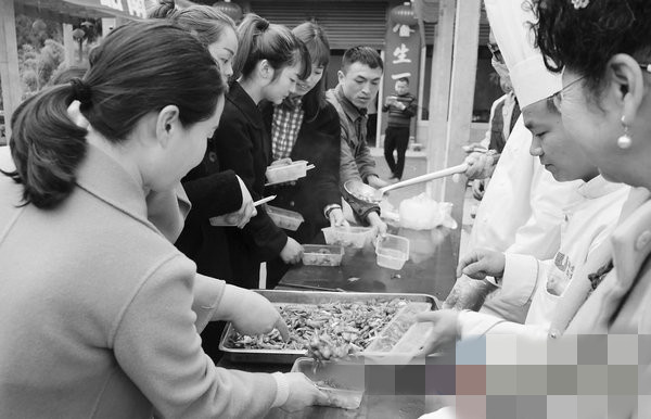 在开业仪式现场,南充大蓉和筷乐兄弟餐饮连锁公司的厨师团队还为朱德故里景区的30户农家乐业主和厨师现场授艺,传授了小炒肉、芝麻圆等招牌菜的制作技术,从原料、火候,到配料、起锅,大厨们一边讲解,一边现场演示。一些游客现场品尝了大厨制作的小炒肉后,纷纷竖起大拇指。