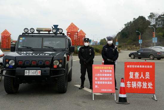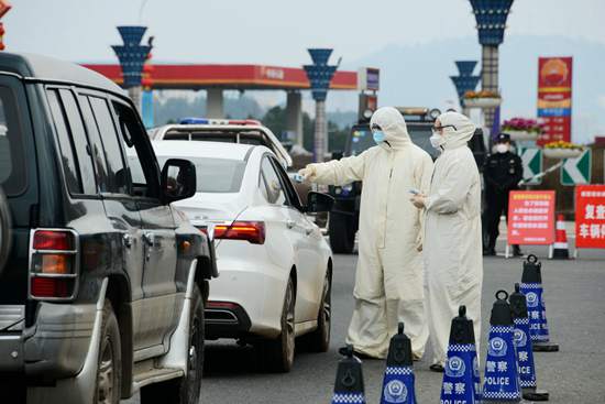 2月4日,仪陇县新政镇高速路口,县交警大队城区中队的警察刘丽华正在检查点执勤。她从1月23日起已经半个多月没回家了。旁边,特警、派出所的干警、运政、医务人员和她的同事们一起在忙着检查车辆、登记,为过往乘客和驾驶员检测体温。刘丽华说“守护人民群众的健康平安是我们的责任”。
