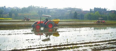3月6日,在赛金镇高家坝村高产粮油基地, 仪陇县高新农作物种植农民专业合作社业主彭帅驾驶着拖拉机翻耕水田, 两三圈下来, 眼前的一方水田便翻耕完毕。“机器耕田,能有效控草,减少后期的农药使用,而且效率高,成本低。”彭帅告诉记者,一亩水田大概只需要20分钟,是普通微耕机效率的10倍。目前,该基地约有400亩水田,3台拖拉机大约4天就可以翻耕完毕。
