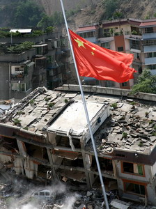 废墟上那面不倒的五星红旗