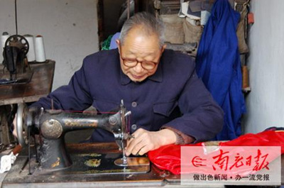 在交谈中,郑师傅聊起了他学缝纫手艺的经历。从12岁起,他就开始学裁缝,到现在已60多年了。解放前,都是手工做,一把尺子、一根针、一把剪刀,男的做长衫和便衣,女的做旗袍。还经常随师傅下乡做,当时一件衣服手工缝制需要1天半的时间。解放后就兴起了缝纫机。郑师傅说,他的祖辈都是佃农,世代为地主耕种。由于家穷,年少的郑师傅只有尽早选学一门手艺以减轻家庭负担。抱着求生存的想法,郑师傅走上了裁缝这条路。