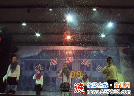 本站讯:仪陇中学于2008年12月26日晚8点30分在金城校区举办了“仪陇中学庆祝元旦暨2009级毕业晚会”,仪陇中学全体师生在歌舞中度过了一个愉快的夜晚。