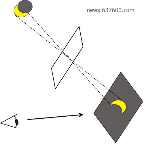 利用两块板子,在其中一块板子上挖一个小洞,让阳光穿过这个小洞投影到另一块板子上。