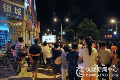 7月8日晚上8时,县城居民在亚星市场再次观看了一场“坝坝电影”。在放映现场,居民或坐在自带的小凳子上,或坐在台阶上,或者坐在自行车上或者坐在摩托车上。过往的行人以及附近的居民聚集在一起,尽情的享受电影带来的一阵阵的快乐。