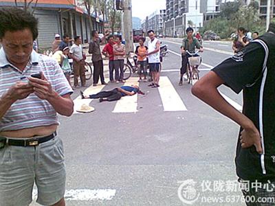 图 车祸现场(白色体恤男子为小车驾驶员)