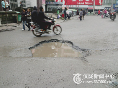 本站讯 在仪陇老县城车站坝往西环路方向,由于巴中等外地车流量较大,路面沥青层由于破损扩散已经烂成了一个大洞,常言说小洞不补、大洞二尺五,希望这次修补街道能将此处也一并修复,以免“马失前蹄”,笔者注意到路过此地车辆无一例外都要绕一盘子,不是拥挤就是占道行驶,极易发生事故。