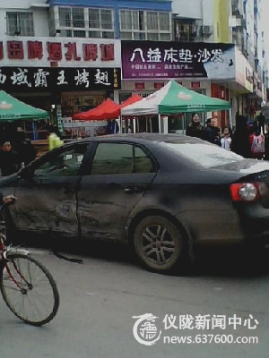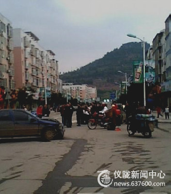 事发现场围满了群众小车伤痕累累小车伤痕累累