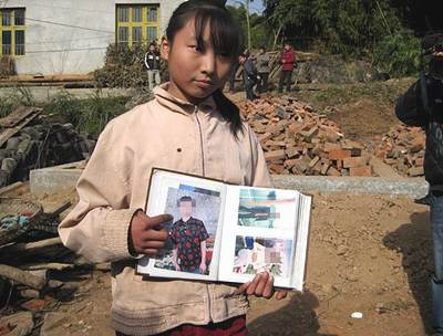 小丽萍拿着父亲的照片说,爸爸已经离开家9年了