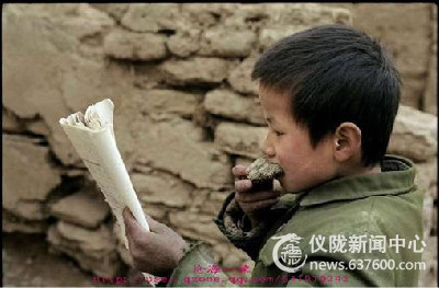 贫困家庭的孩子,边吃窝窝头边看书