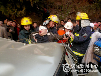 为了有空间展开救援行动,两名队员协同民警对现场进行疏散警戒,并现场观察酝酿施救方案,被困为驾驶员的位置严重受撞挤压,导致被困者的双腿被死死卡在方向盘下。消防队员立即用液压钳进行扩张救人。 “看见腿了……”“出来了,出来了”经过近10分钟的努力,消防官兵利用液压钳小心翼翼的一点点对挤压车体进行扩张,成功将被困人员救出,送上了一旁的120急救车。