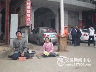 本网讯(汪洋)4月18日早上,仪陇老县城街头只闻到处一片讨口叫花的刺耳音乐,好像比昨日要钱的更多了,而昨天要钱的残疾人仍在文化路原地未动。在金城镇政府门口,看似一对残疾人夫妇在前俯后仰地要钱,引来大家旁观;在西门口,一个腿部残疾的老太婆也蹲在那里要钱,话语十分悲伤的样子,笔者喊内人给她拿了钱后,她极为流利地说了一大串,大意无非菩萨保佑你长命百岁万万年。而当笔者给其拍照时,她突然一反常态,怒目圆睁,说你给我照相干什么?我不要你照相!前后判若两人。真的吗?假的吗?留与世人评说。