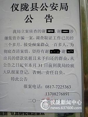 据了解,今年4月以来,仪陇县公安局经侦大队陆续接到李某等近百名群众的报案:该县新政镇人谢某父子以投资养猪场、承包工程、修建学校等名目需要资金为由,分别以1.5分至5分的利息向群众借款,借款金额高度达2400余万元,随后谢氏父子携款举家潜逃,接报案后仪陇警方迅速介入调查,通过跨县跨市跨省的有效工作,历时三月,终将3名涉案人员抓获。