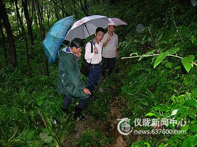 本站讯 (特约记者 唐明平摄) 今年以来,针对辖区内山区居多和连续暴雨的特点,仪陇县碧泉乡政府及时组织乡国土、乡安办和联村乡干部会同各村组重点加强了对地质灾害点的巡防、监控和预警工作,到目前已成功地处置了辖区内3起地质灾害及10多起山体滑坡等隐患,把隐患消灭在了萌芽状态,较好地维护了当地人民群众的生命和财产安全。图为8月24日副乡长饶程(中)带领乡国土所、乡安办工作人员和联村乡干部正在冒雨查勘友谊村的一处地质灾害隐患点。