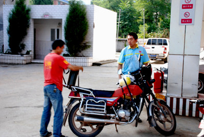 本站讯 9月3日,记者再次暗访了新马沿线各加油站,在沿线几处加油站看见,进站口醒目位置都摆放有“严禁向塑料容器内加注油品”提示牌,其中马鞍加油站处还有专人维持现场秩序,工作人员动作熟练,看见了一位工作人员在劝导一摩托车车主要到站外打火启动,未发现安全隐患。