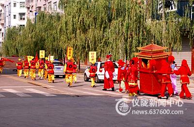 笔者本以为又赶上哪家人的大好喜事,得知原来是县城一婚庆公司为自己量身定做的宣传广告。身作凤冠霞帔的新娘、头戴花幞头的新郎官、大花轿、迎亲乐鼓队等中国传统婚俗元素一应俱全。迎亲队伍踏街而行、走街串巷,别样喜庆的广告为商家自己赚足眼球。