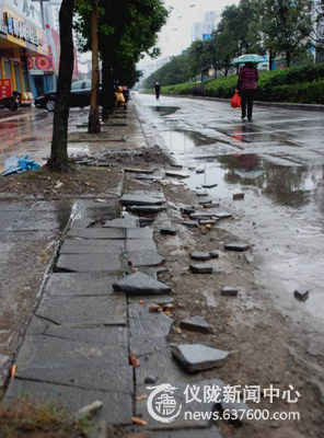 本站讯(吴文东 张超 王涛)大街上两边新铺设的人行道地板砖原本是一道亮丽的风景线,可被车辆碾压后,地面残砖断块,坑坑洼洼反而有损市容。