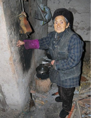 记者一大早就来到仪陇县金城镇状元社区三拐巷寻找尹正明老人的家,看见这里已经被夷为平地,通过了解,该处因地质危险进行改建;经多方打听,记者得知尹正明的小女儿尹国琼正在接小孩放学,随后,记者来到小学找到了的尹国琼,她告诉记者,今年10月份的时候,她们搬到了红旗堰文星奶牛场附近的一处农房(约100平米左右),相比三拐巷的住处,这里宽敞干净安全了很多。大约十分钟后,记者来到了她们新住处见到了谭定琼老太太,此时老太太正在做饭,简单的房屋里,堆满了柴火,靠墙处一个炉子正做着稀饭。谭定琼老太太告诉记者,由于每月只有400元的生活费,她们要想吃一顿肉,可能每月就那么一次,平常就买点便宜的蔬菜,而自从被摩托车撞了后,再也不能去捡垃圾了,目前全靠政府的帮助生活。