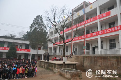 步入校园,硕大的横幅显示这所小学获得县上优秀奖教师很多,王老师也是其中一位。