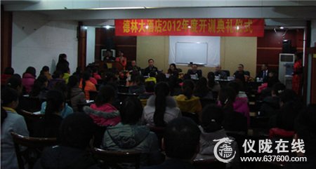 3月6日上午,位于仪陇县金城镇的德林大酒店员工岗前培训在金粟大酒店会议室举行。仪陇县金城镇党委副书记、镇长王光明,仪陇县旅游局副局长胡春华,仪陇县人社局培训股股长佘书成,金城镇副镇长王国君及德林大酒店负责人等出席了开班仪式。