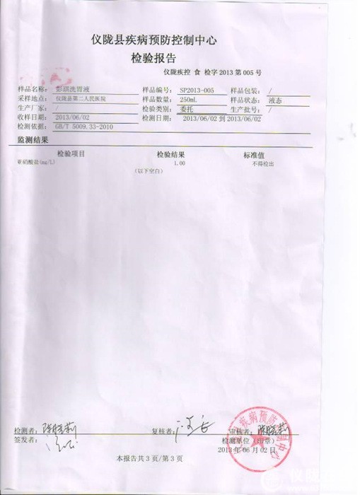 县公安局请市上法医对死者进行了尸检,从结果分析,邓某之妻彭某及其大女儿胃内残留食物亚硝酸盐严重超标。