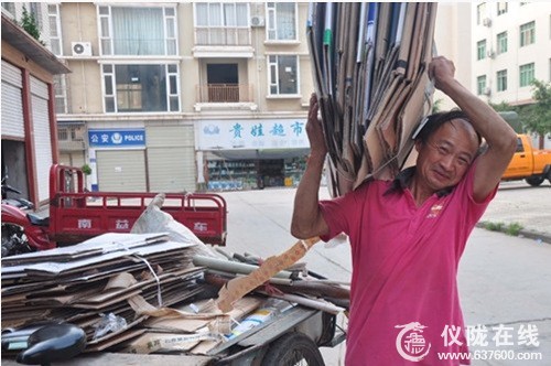 6月16日中午,已到了吃饭时间,李天海忙着把一堆废纸箱扛上三轮车,他说,“从来就没觉得自己有多老,我才59岁,连退休年龄都没到。”